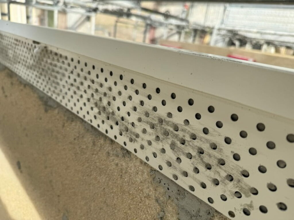 - Mise en œuvre de profilés goutte d’eau en aluminium thermolaqué en rives des balcons
